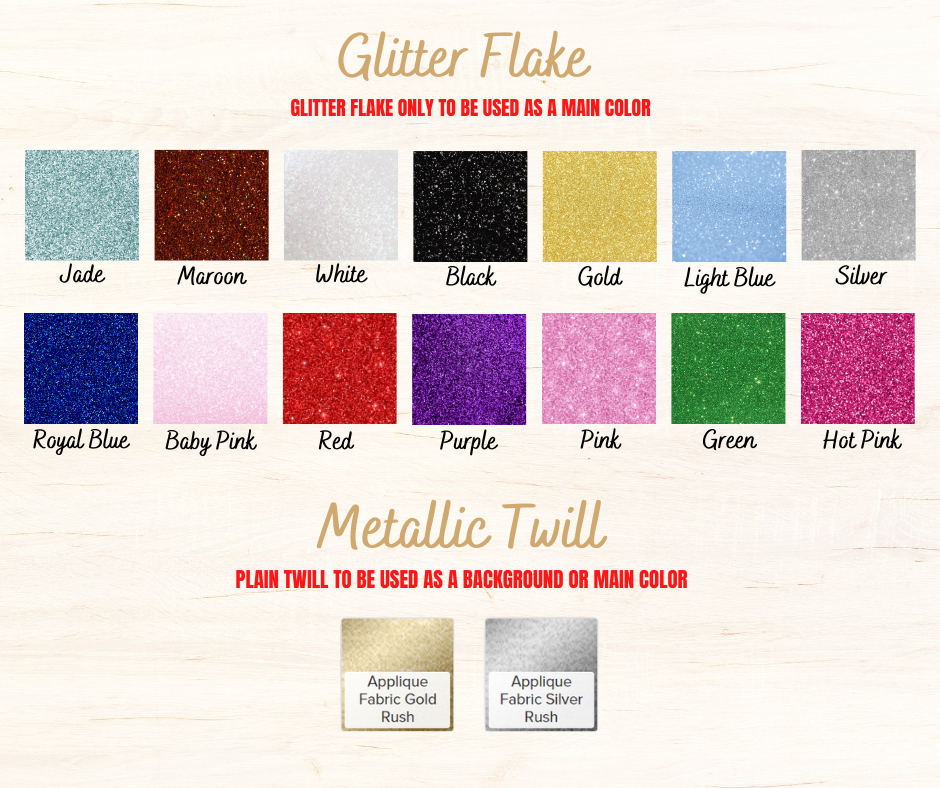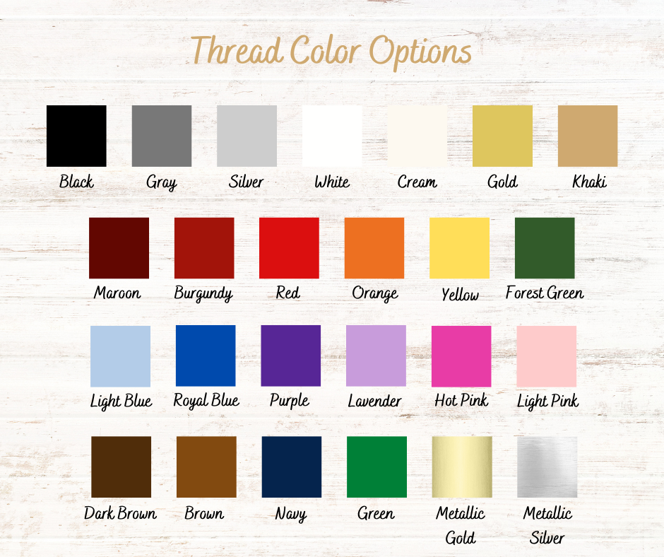 - Background Fabric, Background Thread, Main Fabric & Main Thread